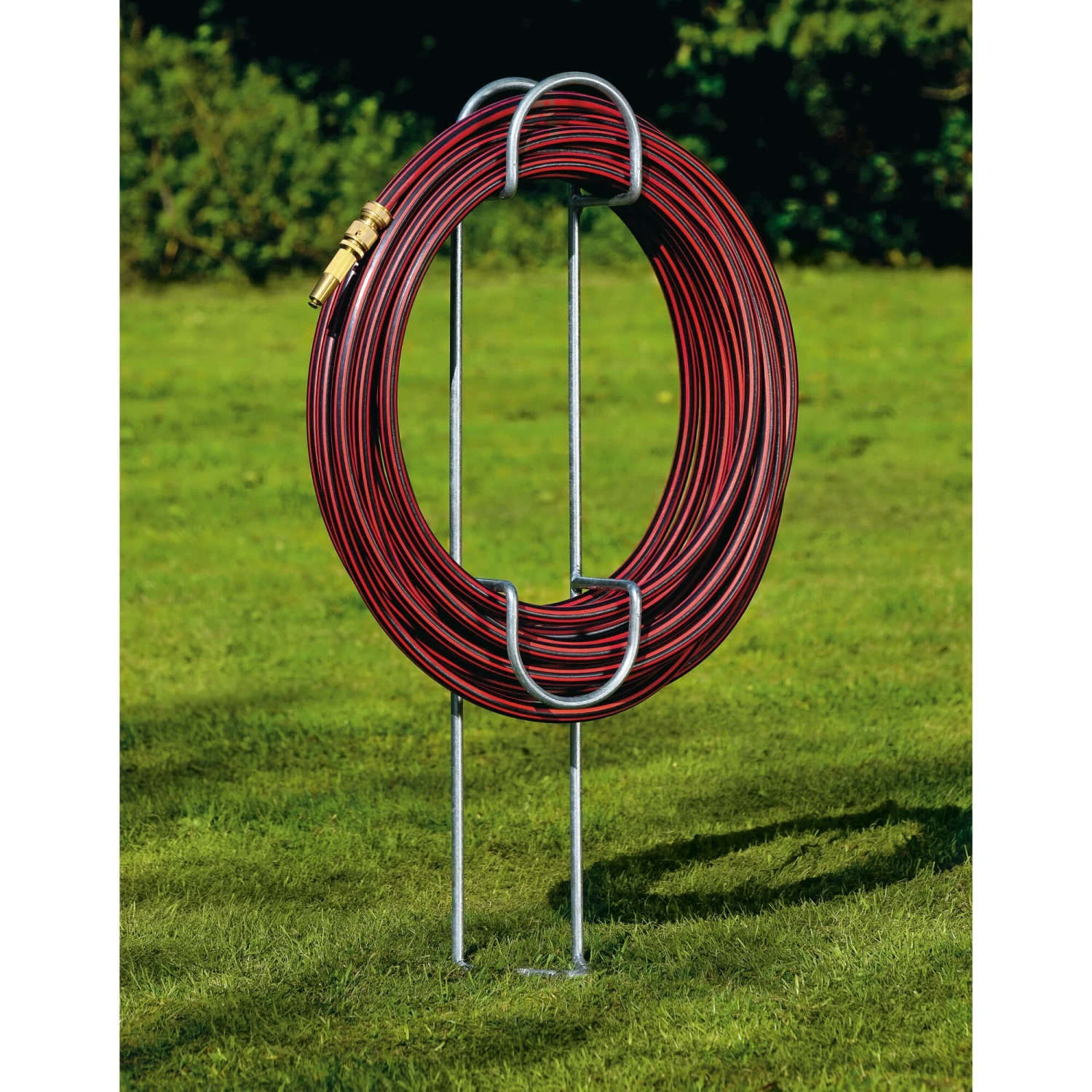 Houdt de tuinslang waar hij nodig is, goed opgerold en zonder struikelgevaar. De stevige houder wordt zonder verdere bevestiging in het gazon of bed gestoken. Hij is gelast uit thermisch verzinkt staal en kan het hele jaar door buiten blijven staan – of samen met de slang aan het begin van het koude seizoen in het gereedschapsschuurtje worden geplaatst. De slanghouder wordt vervaardigd door een metaalverwerker in België.
