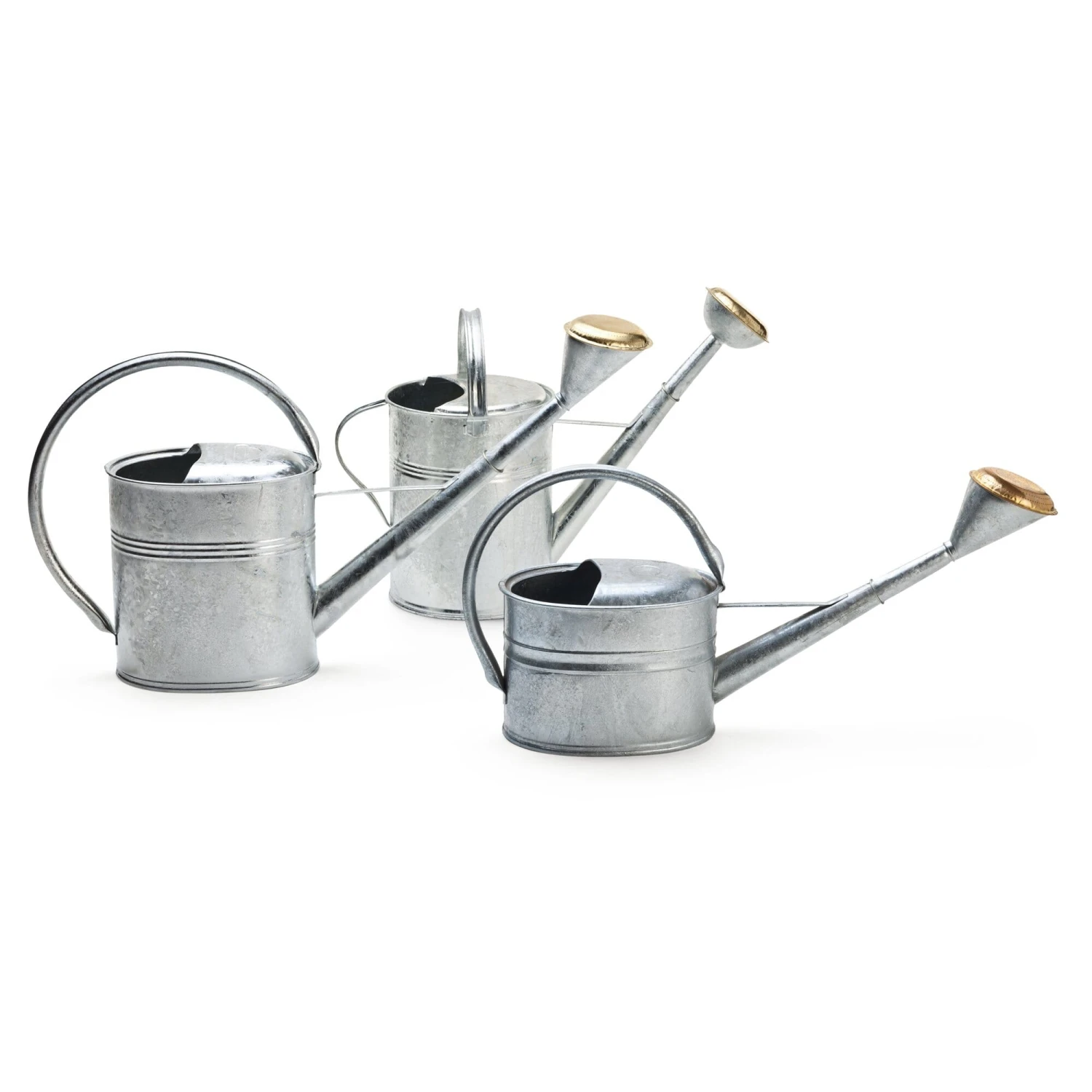 Drie gieters van thermisch verzinkt, 0,5 mm dik plaatstaal. In het dompelbad krijgen ze een dikke zinklaag die ze duurzaam beschermt tegen invloeden van buitenaf. De afneembare messing douche is voorzien van een rubberen ring (UV-stabiel en vorstbestendig) voor de afdichting, die indien nodig ook kan worden verwijderd.