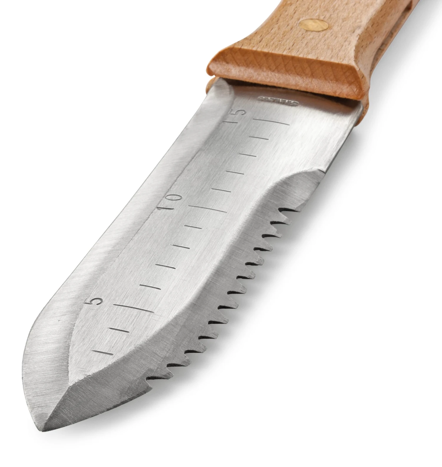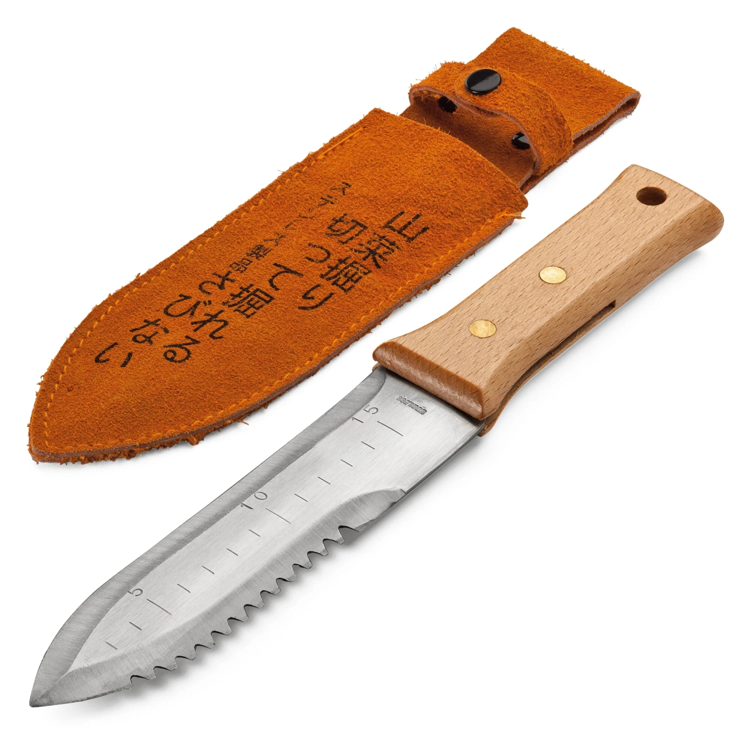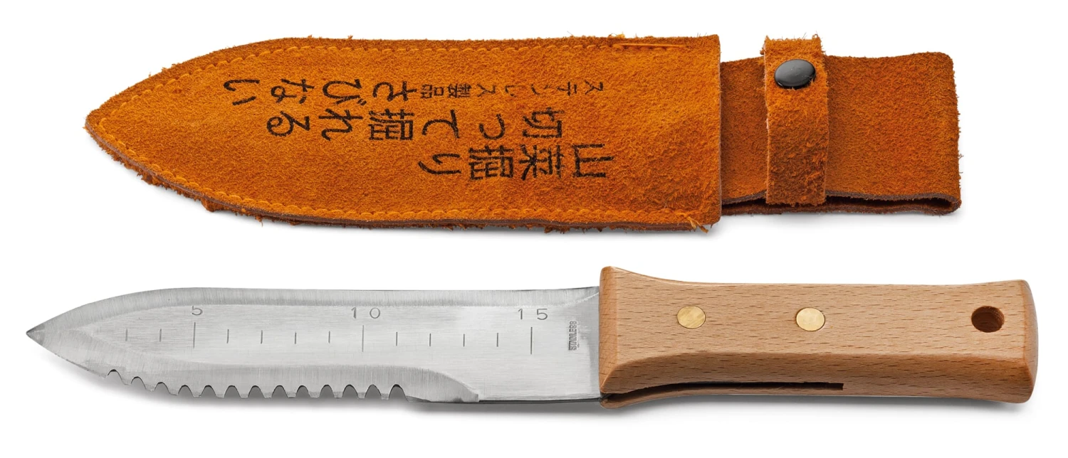De “Hori-Hori” is een alomtegenwoordig gereedschap in Japanse tuinen voor vele doeleinden: de puntige, licht gebogen vorm maakt het planten en verplanten van planten in potten en buiten mogelijk, de breedte van het blad maakt het gemakkelijk om te spitten; de gekartelde en geslepen rand kan worden gebruikt om kruidachtige borders te verdelen of wortels door te snijden.