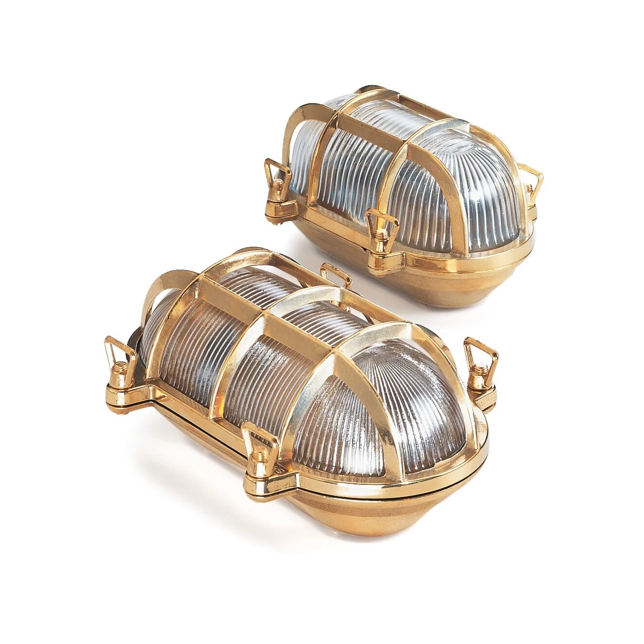 Sinds de dagen van Olim worden deze wind- en weerbestendige scheepslichten van gegoten messing en glas gemaakt aan het Iseomeer bij Milaan. Op zee trotseren ze zwaar weer, zout water en – als ze voorzien zijn van een beschermrooster – zelfs het slaan van delen. Voor alle soorten buitentoepassingen zijn deze verbazingwekkend goedkope armaturen dus niet alleen goed uitgerust, maar zelfs overgekwalificeerd.