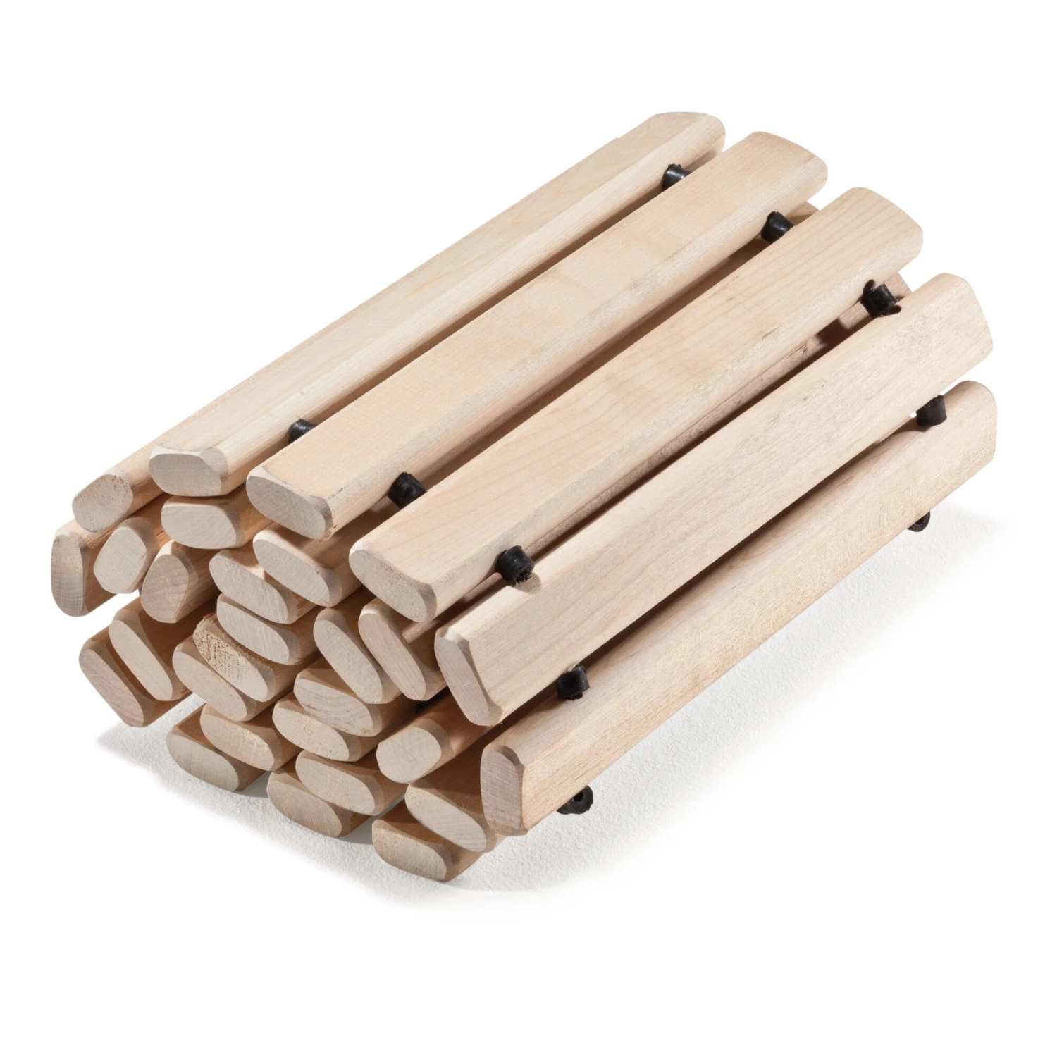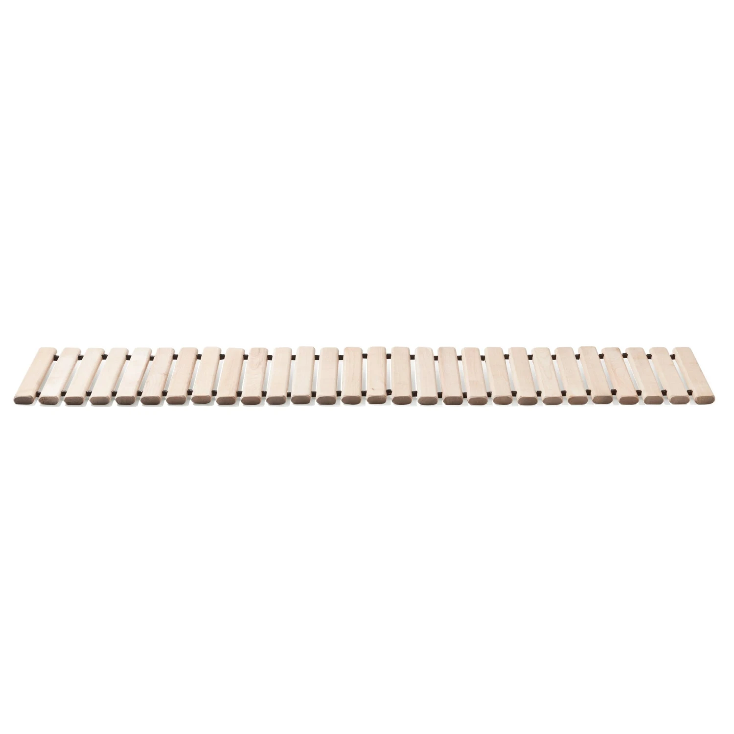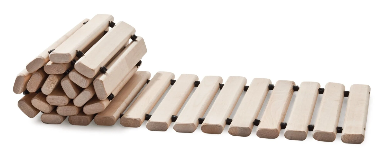 Het verplaatsbare pad van berkenhout blijkt nuttig voor vele tuinwerkzaamheden. De latten zijn gemonteerd op twee duurzame plastic touwen en kunnen worden uitgerold als een mobiel “looppad” wanneer dat nodig is om een ruwe ondergrond gemakkelijker begaanbaar te maken: vers gegraven bedden, zanderige of modderige tuingrond. Na gebruik kan de loopbrug weer worden opgerold en plaatsbesparend worden opgeborgen tot het volgende gebruik. Of het kan op een andere manier worden gebruikt: als middenpad in de serre, naast het zwembad of als deurmat naar de tuindouche.