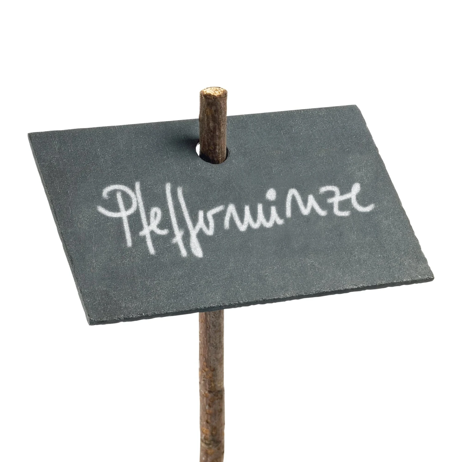 Rustieke plantenborden van 2 mm dik leisteen, stijlgetrouw en permanent beschrijfbaar met de bijgeleverde leisteenstift. Met gat om op te hangen of aan een stok te bevestigen. (Op natte leisteen verdwijnt het schrift visueel, maar “verschijnt” het weer als het opdroogt).