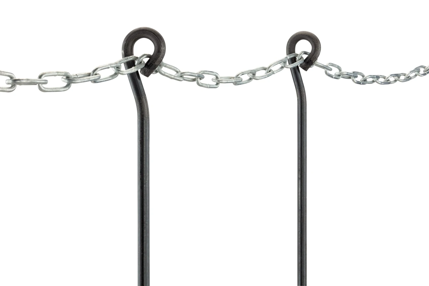 Gemaakt van onbehandeld staal. Elke Ø 1 cm, lengte 115 cm. Oogje buiten Ø 37 mm, binnen Ø 20 mm. Gewicht 750 g (1 stuk).