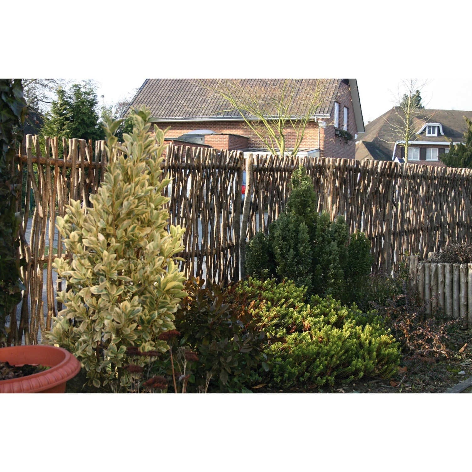 Hekken van hazelaarstaven worden beschouwd als de meest oorspronkelijke vorm in hun soort – ze werden al in de ijzertijd gebruikt als erfafscheiding. Hazelaar vlechtwerk is uiterst veerkrachtig en stabiel: u kunt ervan uitgaan dat het tot 15 jaar meegaat, want hazelaarhout is weerbestendig en gaat lang mee zonder verdere chemische behandeling of impregnering. De natuurlijke hekken worden gemaakt door ervaren wevers volgens oude ambachtelijke tradities. De hazelaarstaven worden geoogst na de eerste vorst, wanneer het hout op zijn hardst is. Voor verdere verwerking worden de staven geweekt in warm water om ze de flexibiliteit te geven die ze nodig hebben voor het weven. De hekken zijn even aantrekkelijk als functioneel element – in de vorm van een privacyscherm – als als designelement – in de vorm van een volledig natuurlijke klimhulp.