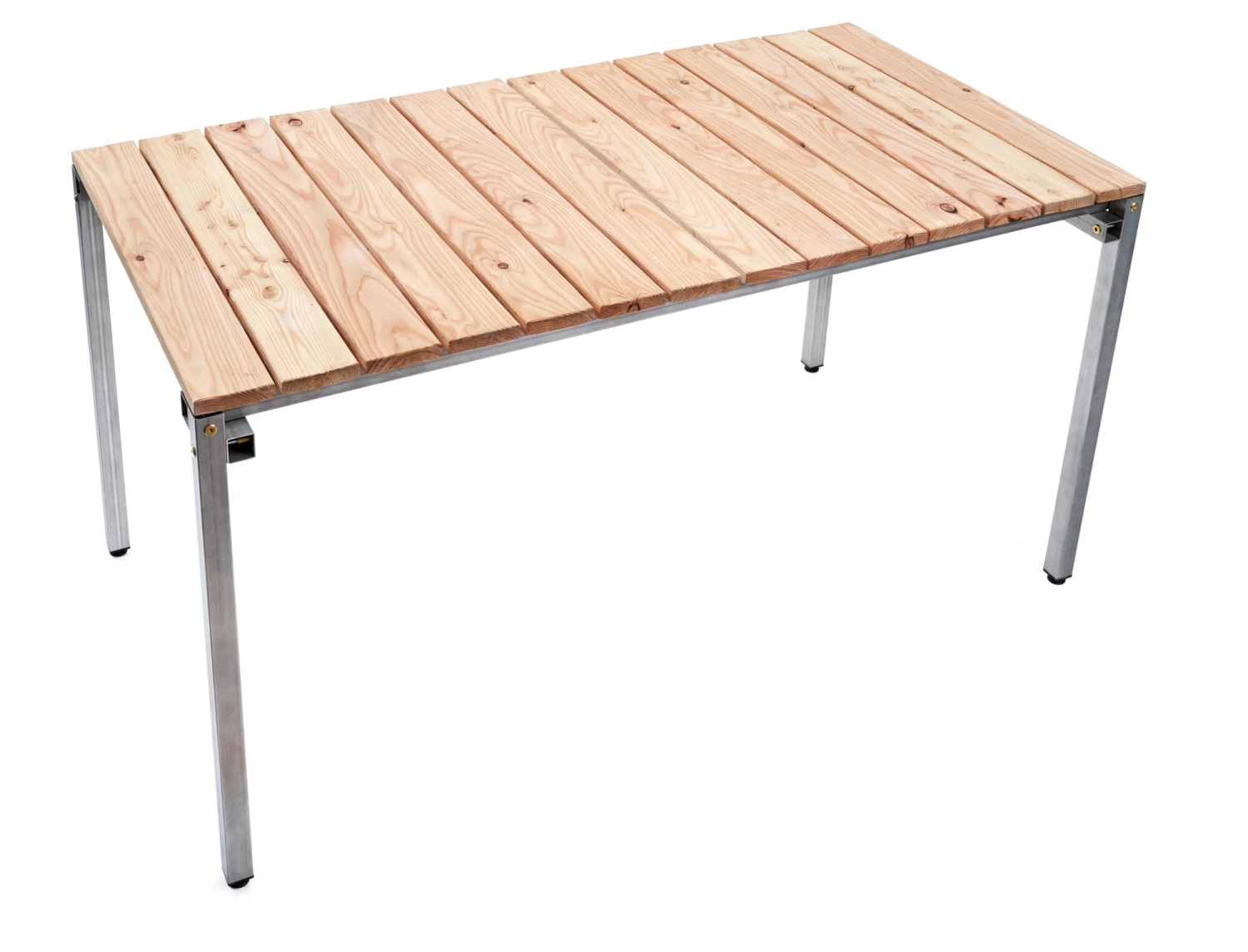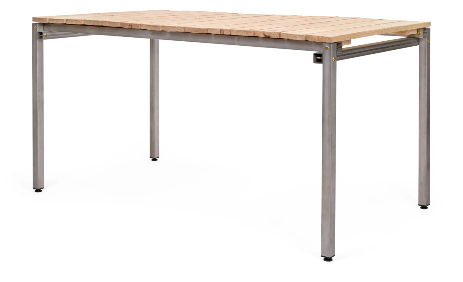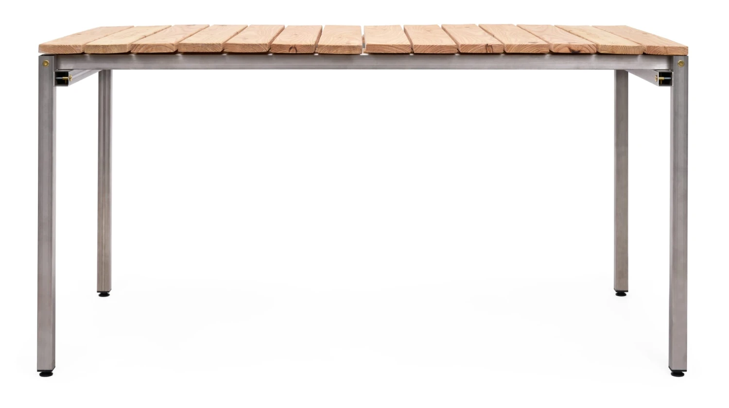 Een speciaal tafelblad van massief, onbehandeld Douglas hout, aan alle zijden geschaafd en afgeschuind, passend bij het ERIK NIRO tafelframe. Dit maakt van het roestvrijstalen tafelframe een weerbestendige buitentafel. De speciale constructie in bordvorm bestaat uit twee delen voor een betere hantering en is stevig verbonden met het tafelframe met roestvrijstalen schroeven die bij de levering zijn inbegrepen.