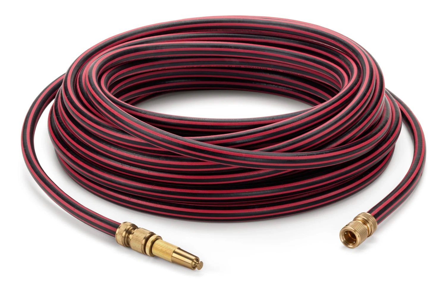Van de fabrikant van de Gold Snake komt deze zeer duurzame slang van synthetisch rubber, met een wanddikte van 3,5 mm, zodat hij (in tegenstelling tot de Gold Snake) zonder adapters kan worden gebruikt met standaard slangkoppelingen met knelfittingen (zoals de onze van messing en met de identiek geconstrueerde aansluitingen van kunststof).