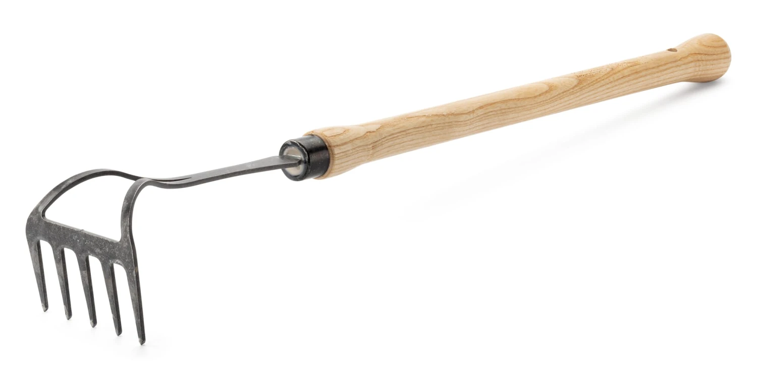 Het is de perfecte combinatie. Deze handhark combineert de nauwkeurigheid van een handgereedschap met de reikwijdte van een gereedschap met een langere steel, zodat rugvriendelijk rechtop kan worden gewerkt – bijvoorbeeld om verhoogde bedden voor te bereiden op zaaien, om de grond in de bedstee los te maken, te beluchten en glad te strijken. De tanden zijn gesmeed van mangaan-boron staal, het essenhouten handvat ligt prettig in de hand. Met de gevormde knop aan het einde van het handvat, maakt het ook een krachtige greep mogelijk, mocht dat ooit nodig zijn. Onze handhark voor verhoogde bedden wordt vervaardigd in een smederij in Opper-Franken die kan terugkijken op een familietraditie van meer dan 200 jaar.