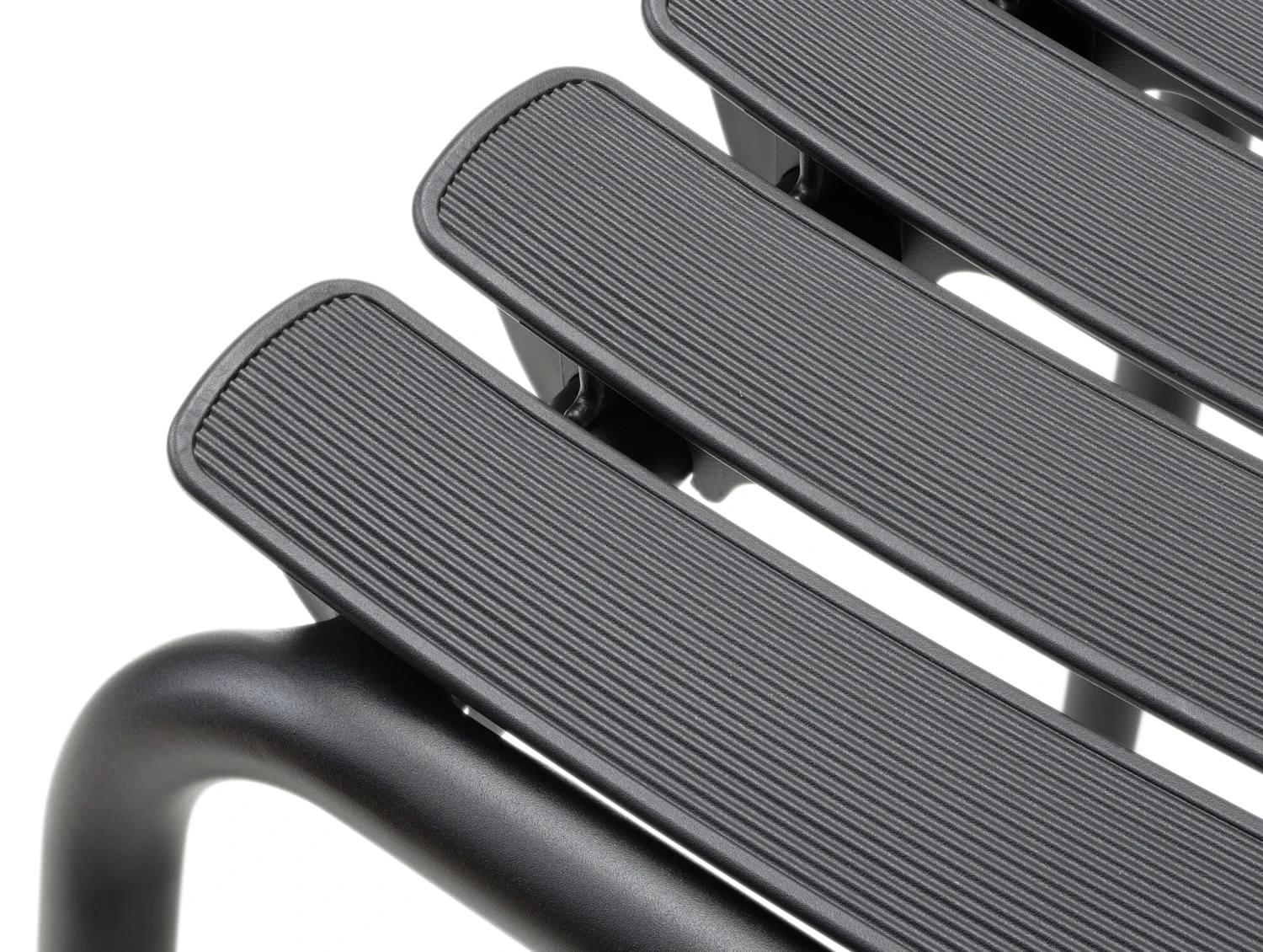 Stapelbaar en weerbestendig en ook zeer comfortabel zonder kussen: de producten van de RE-CLIPS-serie hebben frames van gerecycled aluminium. Ze zijn uitgerust met flexibele latten die worden geproduceerd uit Deens huishoudelijk afval. De producten combineren een laag gewicht met een hoge robuustheid en weersbestendigheid.